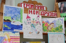 В библиотеке прошел конкурс рисунков "Герои книг-мои друзья". Дети читают книги, у каждого есть свой любимый герой.
