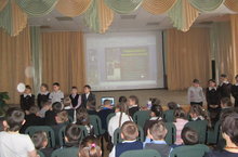 В актовом зале библиотекарь Хабибуллина В.А. провела устный журнал, посвященный 55-летию первого полета человека в космос.