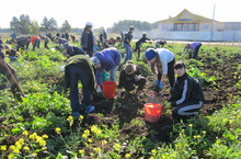 Бүген мәктәптә көзге уңыш җыю өмәсе уздырылды. 9 - 11 нче сыйныф укучылары бәрәңге, 5-8 нче сыйныф укучылары эре-эре чөгендерләр, кишерләр җыйды. Зур-зур сары кабаклар, кәбестәләрне күреп шаккаттык. Ә алмасы!..... Кызыл, тәмле, хуш исле алмалар белән кәрзиннәри тулды. Мәктәп ашханәсе яшелчәләр белән безне сыйлар. Без дә көч һәм сәламәтлек артыр!
