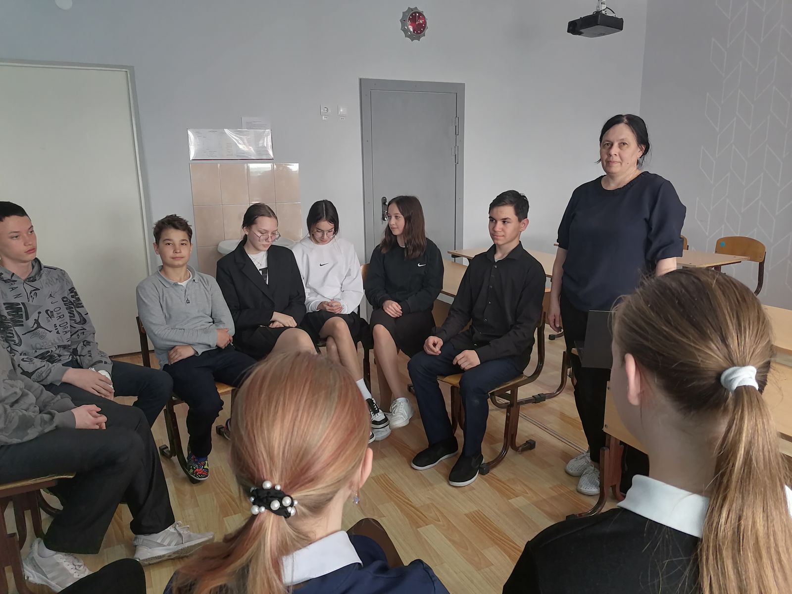 Бүген, 19.04.2024 елда, Кәримова Лидия Илдус кызы «Кушу һәм алу таблицасын 20 чикләрендә ныгыту» темасына математика буенча ачык дәрес күрсәтте. Дәрес диңгез сәяхәте формасында узды. Максат итеп саннарны номерлауны, 20 чикләрендәге тәртипле исәпләүне ныгыту, 20 чикләрендәге телдән исәпләү күнекмәләрен камилләштерү, логик фикерләүне үстерү, закончалыкларны эзләү, үз-үзеңне анализлау һәм үз-үзеңне контрольдә тоту күнекмәләрен формалаштыру куелган иде. Төсле түгәрәкләр ярдәмендә укучылар үз эшчәнлекләрен бәяләделәр, шулай ук сорауларга телдән җавап бирделәр. Дәреснең барлык этапларында да беркетү биремнәренә өстенлекле роль бирелә. Контрольнең төрле төрләре кулланылган: укучы – укучы ( парларда эшләгәндә), үз – үзеңне контрольдә тоту, укучы-укытучы (үз эшен тактадагы үрнәк белән чагыштыру). Яхшы шартлар, дәрескә уңай караш, заманча ысуллар һәм алымнар сайлау һәр балага үз үсешендә алга барырга ярдәм итте.