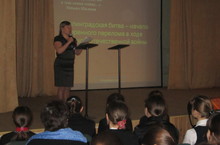 К 70-летию Сталинградской битвы в школе был проведён ряд мероприятий. Для учащихся школы подготовили открытый информационный час, в котором рассказали ребятам о том, какое важное стратегическое значение имела битва под Сталинградом для ВЕЛИКОЙ победы над фашистским захватчиком и о том как наши деды и прадеды проливали кровь, за наше мирное существование.