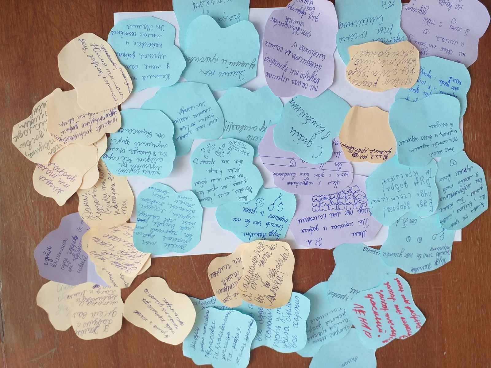 В рамках недели психологии "Шаги к психологическому благополучию" в начальном звене прошла акция «Сделай комплимент другу»и тренинг позитивного отношения. В упражнении «Ладошки» каждый участник обрисовывает свою ладошку на листе бумаги, лист подписывается. Далее участники пишут в каждой «ладошке» свое искреннее пожелание.