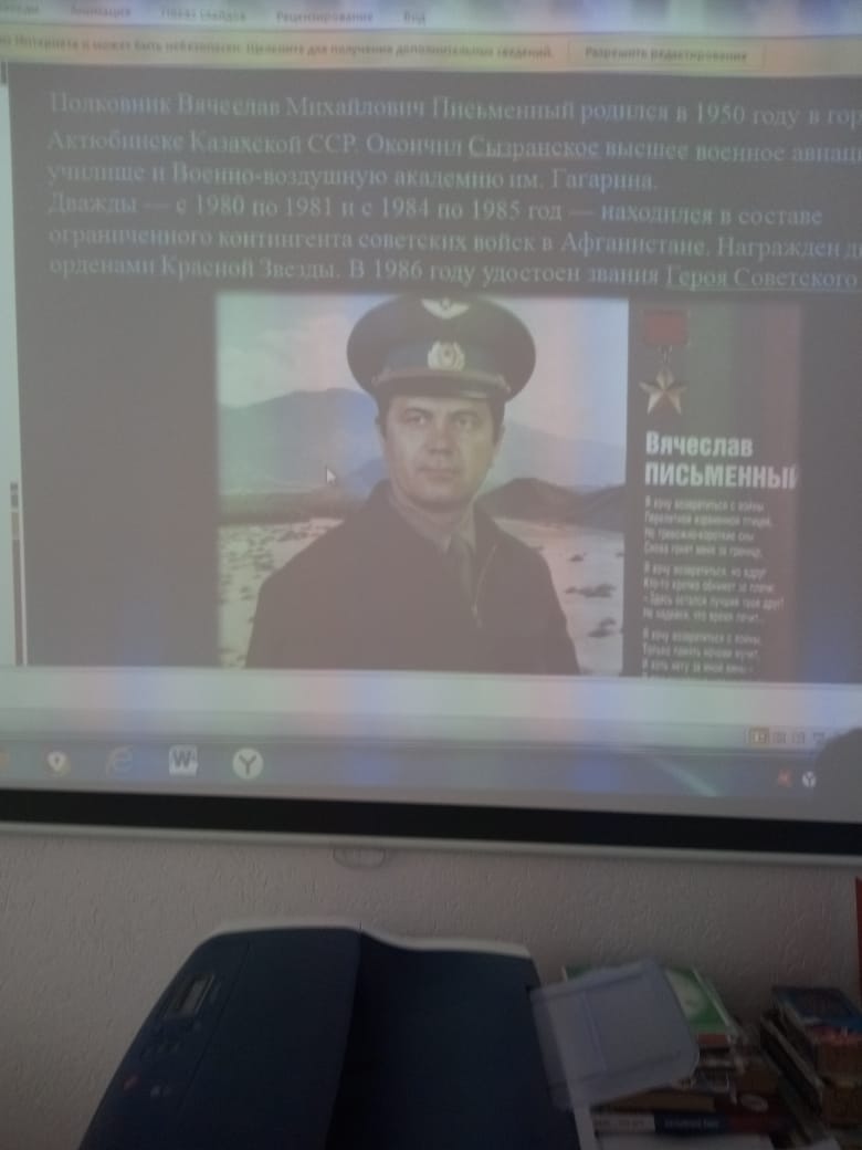 В 582 и 583 группе во главе с классным руководителем А.Ф. Мартыновой провели классный час, где вспомнили и нашего земляка Сергея Еграшкина, который был призван в ряды Советской армии и направлен для прохождения службы в Афганистан, откуда ему не суждено было вернуться. Фото