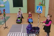 В группе раннего возраста через сюжетно - ролевой игры "Осторожно пешеход" учим детей Правилам Дорожного Движения.