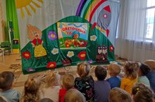Безнең балалар бакчасына "Приключения Незнайки в Цветочном городе спектакле белән "Җемчужина" курчак театры килде. Тематик нигез булып тәртип культурасы һәм яхшы тон кагыйдәләре, ОБЖ элементлары тора. Әкият балаларны игелеккә, тыңлаучанлыкка, әдәплелеккә мавыктыргыч һәм музыкаль формада өйрәтә.Спектакльдә кулдан эшләнгән искиткеч курчаклар катнаша.