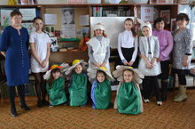 Сегодня в школьной библиотеке МБОУ «Аксубаевский лицей» состоялся литературно-музыкальный вечер «Муса безнең йөрәкләрдә” (“Муса в наших сердцах”), посвященный легендарному герою-поэту Мусе Джалилю. Любимый библиотекарь многих детей сама сшила костюмы героев произведений М. Джалиля: Красной ромашки, Кошки, Зайчика, бабушки и т.д. Задолго до вечера Давлетшина Г. Х. организовала содержательную выставку, где нашли место книги не только школьной программы. На вечере прозвучали стихи поэта, учащиеся 3а и 3б классов (учитель Мингалеева Д.Р.) состязались в любимой многими игре - КВНе.