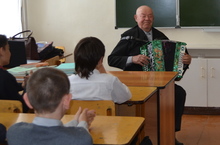 Победы в Великой Отечественной войне, на тему: "Никто не забыт, ничто не забыто", на кл. часу присутствовал председатель совета ветеранов Копанев Е.П. Совместно с Евгением Петровичем ребята исполнили песни военных лет. -