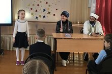 В Международный день родного языка,по утвержденному плану, в актовом зале состоялась встреча с местным писателем Р. Низамовой. На встрече присутствовал Фанис Хазрат, тема его выступления «История развития ислама в России».
