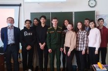 В школе стартовал месячник гражданско-патриотического воспитания, который открылся циклом бесед уроков Мужества. Перед 10 классом выступил выпускник школы, а ныне курсант танкового училища Искандаров Алмаз.