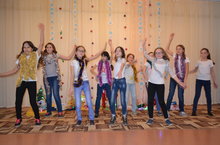 Интересно прошел праздник в среднем звене (5-7 кл.). Оживили картину фрагмента из мультфильма «Простоквашино». В течение всего вечера ребята показывали свои домашние заготовки. Это были танцы, песни, и сценки. Все очень постарались, поэтому всем было весело.