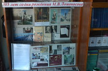 К празднованию 305 - летия со дня рождения М.В. Ломоносова в библиотеке организована книжная выставка «Гений науки и просвещения», на которой представлены книги о жизни и деятельности М.В. Ломоносова, его произведения: избранная проза, поэзия, лирика.