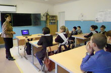 Макарова Елена Васильевна провела "Урок Мужества" в 8 классе по теме "Память павших будьте достойны", посвященный военному параду 7 ноября 1941 года, проходившему в Москве.