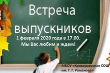 1 февраля 2020 года в МБОУ "Кривоозерская СОШ им. Г.Г. Романова" состоялся вечер встречи выпускников. Вечер втречи традиционно проводится в первую субботу февраля. На вечере присутствовали ветераны педагогического труда, учителя работающие в настоящее время, выпускники прошлых лет, учащиеся 9-11 классов. С поздравительным словом к ввыпускникам обратилаись директор школы Купцова Н.Г и заместитель директора по учебной части Комиссарова Г.А. Учащиеся 9-11 классов подготовили праздничный концерт. Всего на встрече присутствовало 65 выпускников прошлых лет. Вечер прошел в теплой дружеской атмосфере.