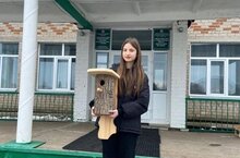Юркова Ангелина,ученица 8 класса вместе с папой Василием Николаевичем изготовили скворечник и подарили его в школе!