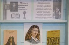 Библиотекарь школы, Муравьева А. Ю., разместила выставку посвященную 395 летию со дня рождения французского драматурга Жана Батиста Мольера (1622 года рождения). Мольер разработал жанр комедии-балета, где действия органически сочетались с танцами и музыкой. К тому жанру относится «Мещанин во дворянстве» - одна из самых проницательных пьес Мольера.
