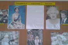 В рамках недели английского языка в фойе школы представлена выставка "Елизавета II -королева Англии", организованная учителем английского языка Н.П. Яшмурзиной. На выставке размещены информация о время правления Елизаветы II, царствующей королевы Великобритании с 1952 года и по настоящее время, а также фотографии ее семьи и внуков.