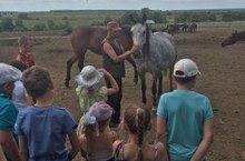 Сегодня ребята посетили конеферму «Актай», директором которого является Шугаев Иван Николевич. Это настоящая ферма, где выращивают породистых лошадей, победителей различных российских соревнований. Ребят встретил работник фермы д.Коля, который провел для детей экскурсию по конюшне, рассказал почти о всех лошадях, которые содержатся на конеферме, о их заслугах и победах в скачках, о том, как за ними правильно ухаживать. Дети интересовались всем: сколько всего лошадей на ферме, чем их кормят, как даются клички. После рассказа и показа лошадей ребята с удовольствием катались верхом. С волнением каждый из ребят ожидал свою очередь, чтобы побывать в седле наездника понравившейся лошадки. Это был настоящий восторг!