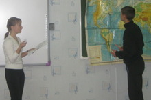 Члены профильного пришкольного лагеря «Эрудит» собрались в кабинете № 18, чтобы определить лучшего знатока географии. Коннова Маргарита Викторовна, учитель географии, подготовила занимательные конкурсы, такие как «Знаешь ли ты, кто самый, самый…», «Отгадай, кто я», «Географические ассоциации», Блиц-турнир «Угадай страну», по итогам которых всего на один балл отстала команда 9 класса. Эмблему лучшего знатока географии получили победители конкурса - обучающиеся 10-11 классов. -