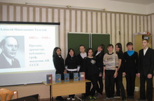 Сегодня старшеклассники под руководством Сотниковой Э.Г., библиотекаря школы, вспоминали творчество А.Н. Толстого, прозаика, драматурга, публициста, академика Академии наук СССР. Карабаева Анжелика, ученица 9 класса, выступила с докладом "Интеллигенция и революция в романе А.Н. Толстого "Хождение по мукам", а Копонева Анастасия представила на суд присутствующих презентацию по теме "Произведение А.Н. Толстого "Петр I".