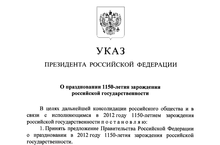 2012 год - празднование в Российской Федерации 1150-летия зарождения российской государственности