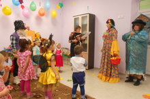 Сегодня у нас прошел осенний праздник. Дети не только окунулись в мир сказки, но и встретились с Красавицей Осенью, с тетушкой Слякотью и старичком Лесовичком. А Осень как всегда пришла со своими дарами: румянными яблочками, ароматными мандаринами и со сладостями.