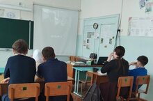 Учащиеся 8 и 11 классов в видеозале посмотрели "Загадка пятого пастулата"