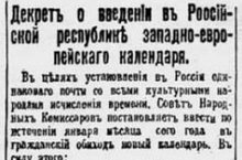 Вы знаете, что произошло в России в период с 1 по 13 февраля 1918 года по новому стилю? Ничего! Ни одного события – никто не родился, не крестился, не женился, не умер… Разве такое возможно? Оказывается, да. Этих дней в российском календаре нет. Период с 1 по 13 февраля 1918 года выпал из российского календаря.