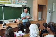 Бүген мәктәбебезнең биология, химия, география фәннәре укытучысы- Рифкать абыебыз лагерьга йөрүче балалаларга кызыклы тәҗрибәләр күрсәтте. Шулай ук укучыларга баш мие һәм йөрәк органнарының эшчәнлеге турында кызыклы мәгълүматлар бирде. Балалар үзләрен кызыксындырган сорауларны яудырып кына тордылар. Әлбәттә, бер сорау да җавапсыз калмады.