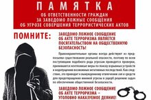 Памятка об ответственности граждан за заведомо ложные сообщения об угрозе террористических актов