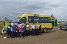 Мәктәпнең башлангыч сыйныф укучылары, ЮИД отряды җитәкчесе Гафиятуллина Руфия апалары житэкчелегендэ, юл йөрү кагыйдәләрен искә төшереп үттеләр. Алар авыл эченнән утуче асфальт юл тирәсендә урнаштырылган тамгаларны кабатладылар. Мэктэп автобусында йөру кагыйдәләрен дэ хәтердә янарттылар