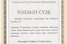 Награждается благодарственным письмом Президента Республики Татарстан, за плодотворную работу и за заслуги в сфере образования, директора МБОУ "Нижнетатмайнская СОШ" Аксубаевского муниципального района Республики Татарстан Насырова Рафика Гумеровича.