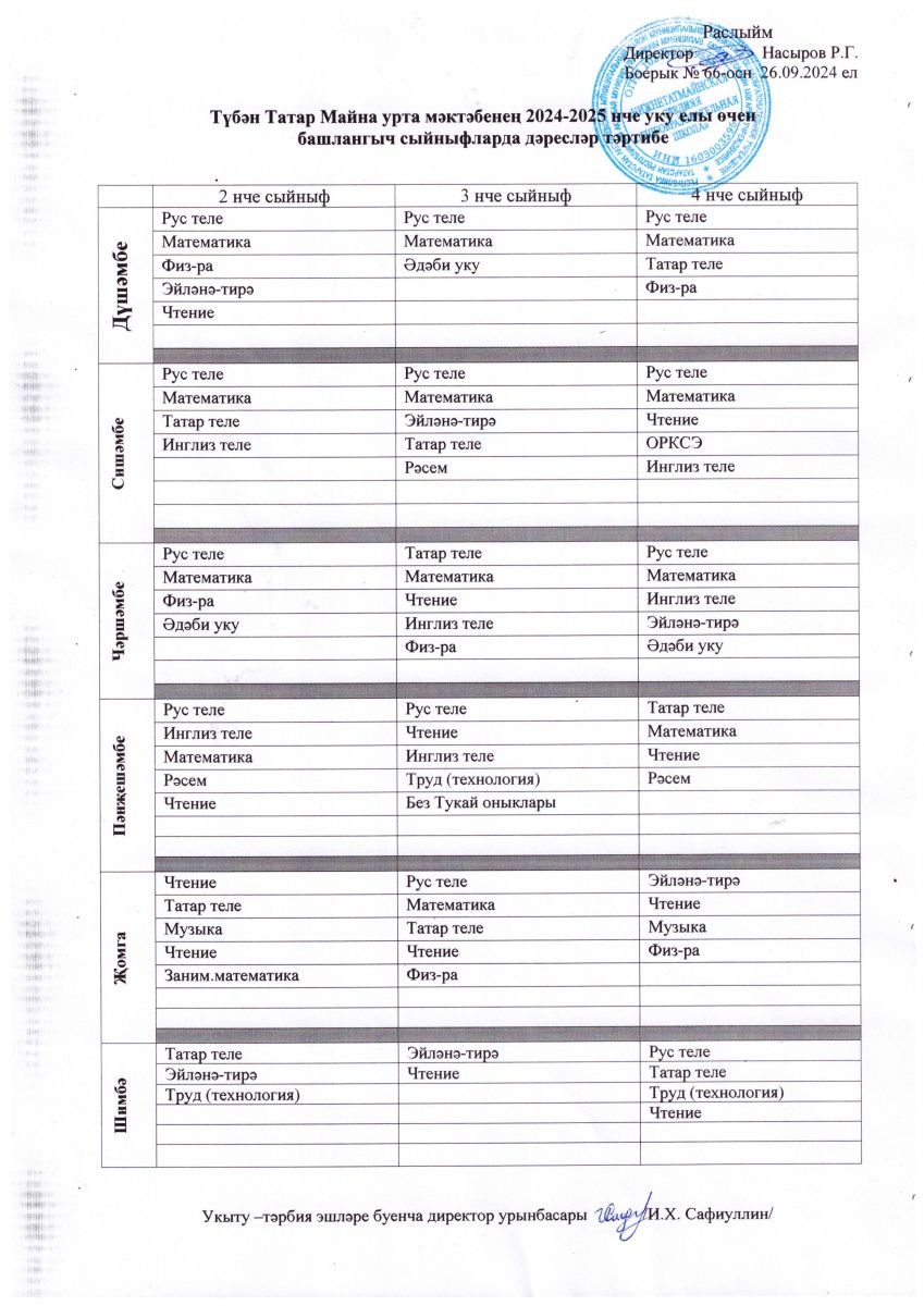 Расписание занятий 2024-2025/ Дәресләр расписаниесе