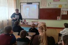 Парни 7-8 класса под руководством учителя истории Тербуковой Н.А. приняли участие на Уроке Мужества. Ребята с интересом слушали рассказы о подвигах , о буднях военнослужащих от ветеранов боевых действий.