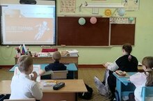 Первый урок в IV четверти во всех классах был посвящён теме Космонавтики и 65 летию со дня первого полёта человека в космос.