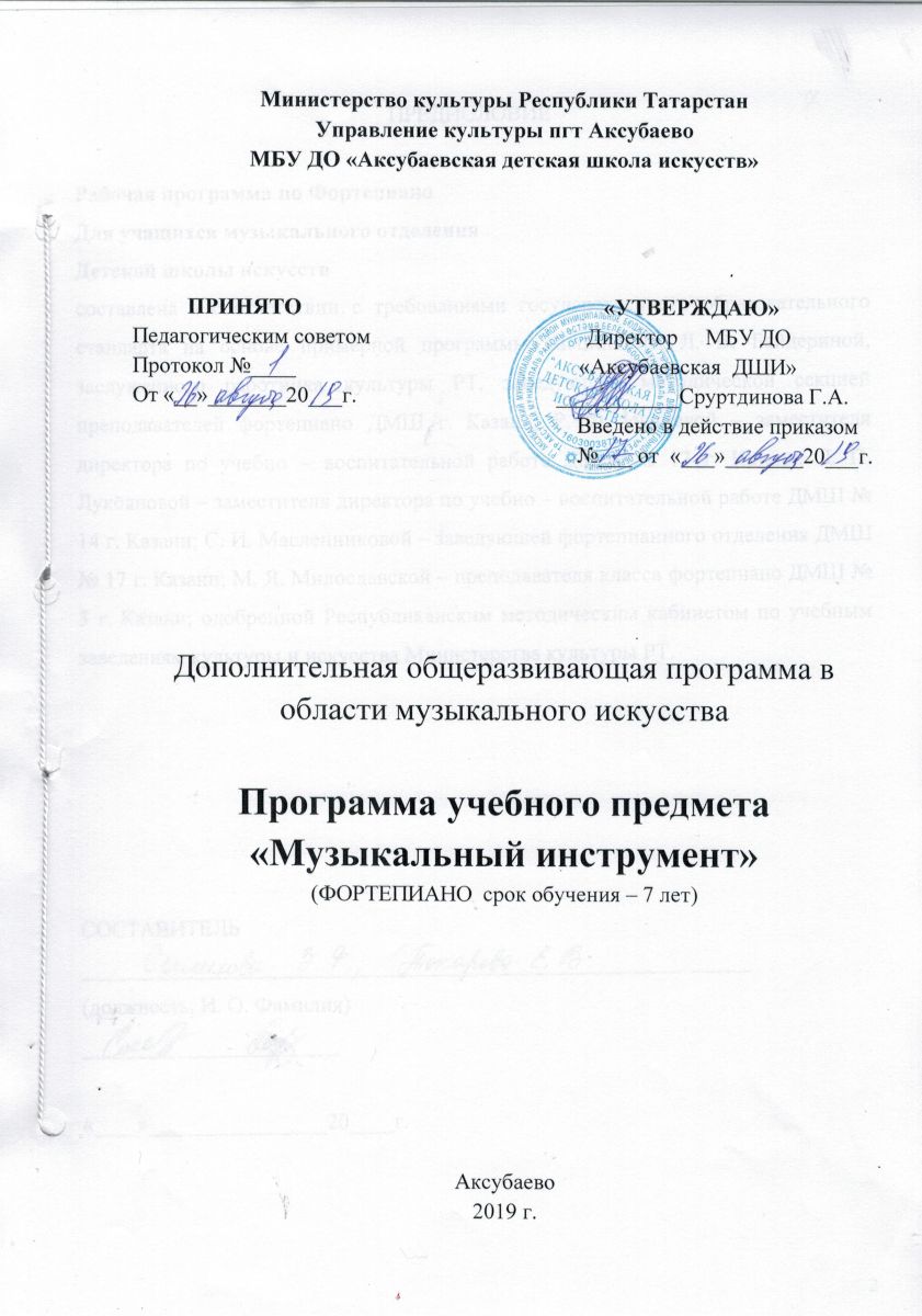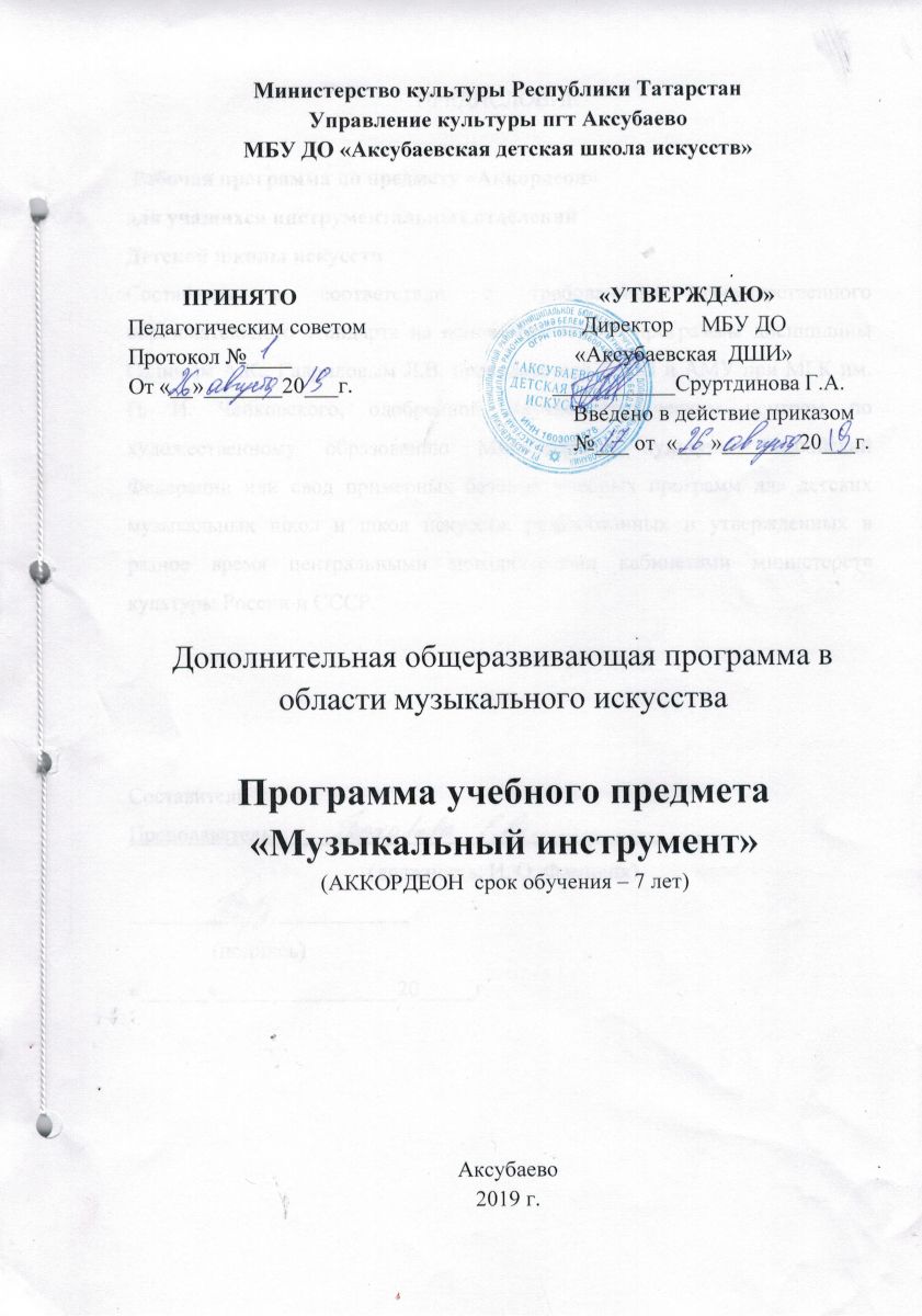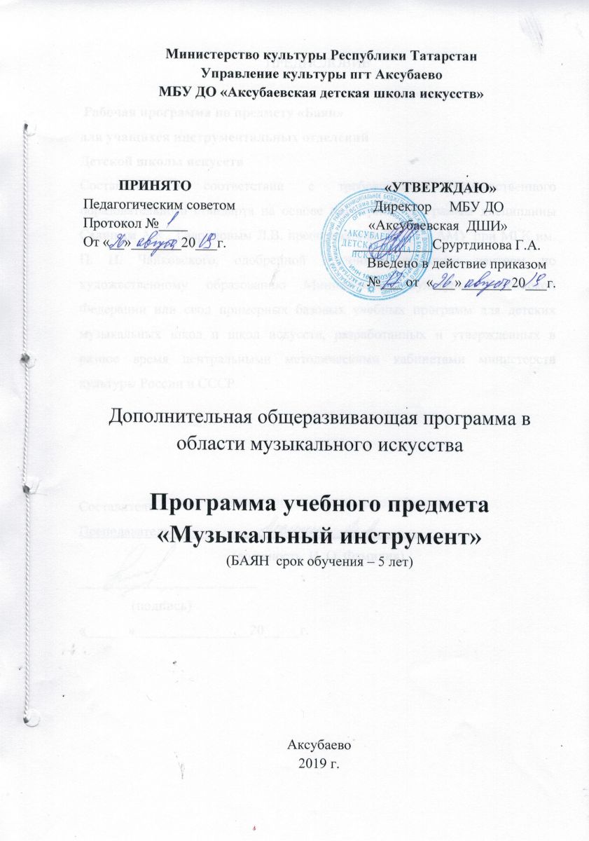 Муниципальное бюджетное учреждение дополнительного образования "Аксубаевская детская школа искусств" Аксубаевского муниципального района Республики Татарстан