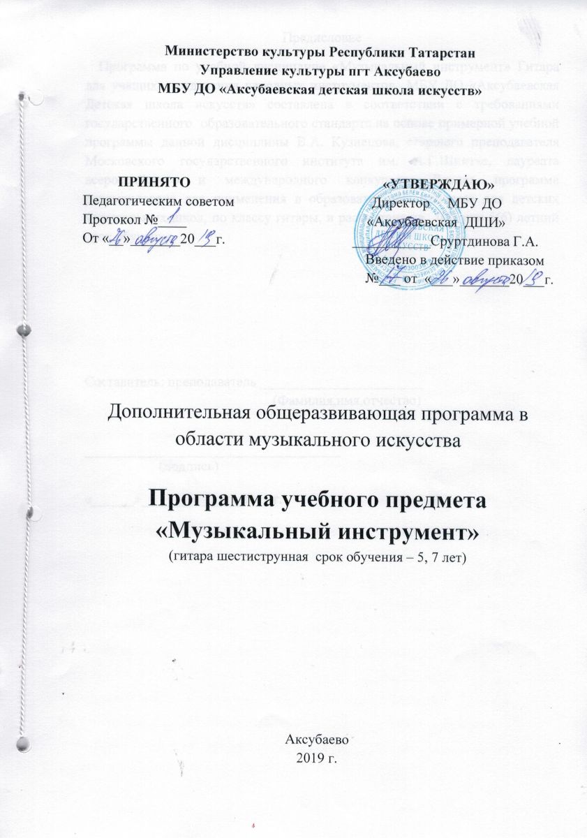 Музыкальный инструмент "Гитара" 7 и 5 лет обучения