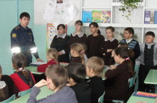 12.09.2012 года прошла встреча с инспектором по пропоганде ОГИБДД по МВД в Аксубаевском районе со старшим лейтенантом полиции Сибгатуллиным И.И. Он ознакомил детей с статистикой правонарушений и рассказал о правилах безопасного поведения на дороге. В конце встречи каждому ученику вручил памятку "Юный велосипедист."