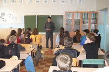 19.04.2012 прошла встреча учащихся 7-11 классов с участковым Мясниковым Иван Николаевичем. Он провел беседу о профилактике ДДТТ и о правилах дорожного движения на тему: "Безопасное лето". Также напомнил о правилах езды на велосипедах, о нахождении учащихся в вечернее время.