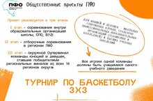 Турнир Приволжского федерального округа по баскетболу 3×3 проводится по трем направлениям: среди студентов учебных заведений среднего профессионального образования (с 2023 года), среди студентов образовательных организаций высшего образования (с 2024 года) и обучающихся общеобразовательных организаций, расположенных в сельской местности и городах с численностью населения до 100 тысяч человек (запланирован в 2025 году).