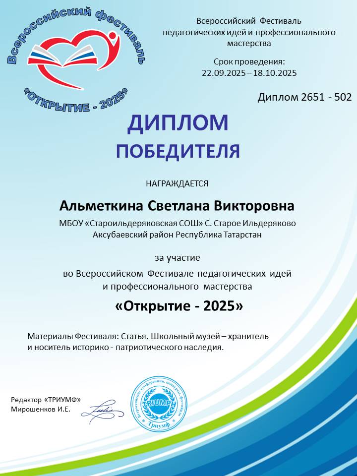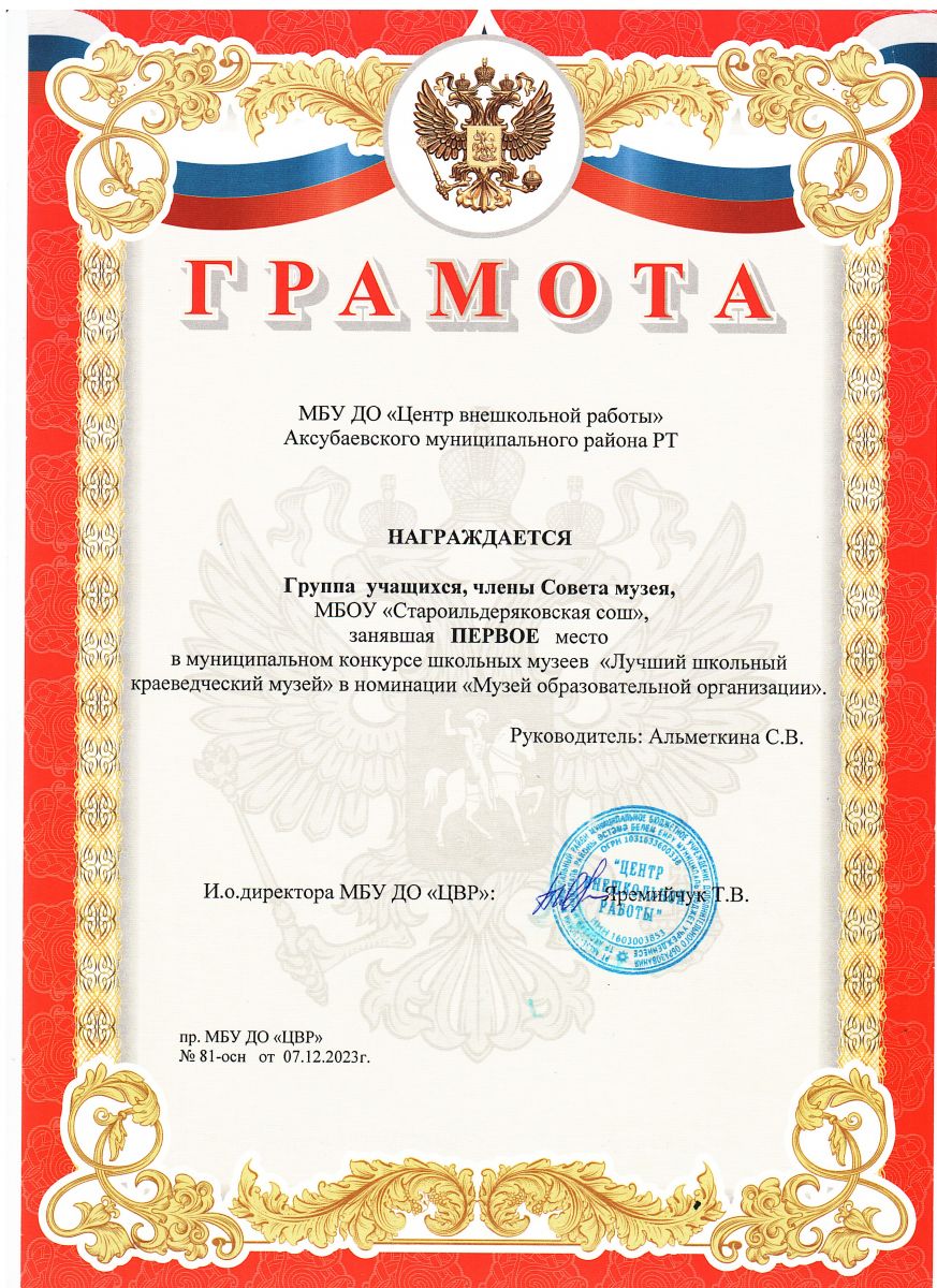 МБОУ «Староильдеряковская средняя общеобразовательная школа» Аксубаевского муниципального района Республики Татарстан/Татарстан Республикасы Аксубай муниципаль районың "Иске Ильдеряк урта гомуми белем бирү мәктәбе" муниципаль бюджет гомуми белем бирү учреждениесе
