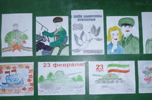 Учащиеся начальной школы нарисовали рисунки для пап. Некоторые дети попробовали даже написать портреты своих пап, хотя это было нелегко.