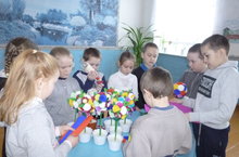 В школе идет подготовка к наступающему празднику - женскому дню. Дети с большим старанием делают подарок для мам. В этом году решили подарить очень красивый букет из цветов - топиарий.