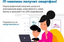 Проходит республиканский конкурс IT-чемпион!Конкурс проводится в два этапа в период с сентября 2018г. по апрель 2019г.Срок проведения КонкурсаПервый этап: с 18 сентября по 30 ноября 2018 годаВторой этап: с 1 февраля по 30 апреля 2019 годаКопите до 30 апреля призовые баллы и выиграйте один из 135 новеньких смартфоновПодробности - на uslugi.tatarstan.ru и в группе vk.com/e_tatarstan -