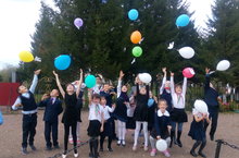 В Международный день мира ученики нашей школы запустили в небо бумажных голубей с разноцветными шарами.Ученики написали на бумажных голубях имена героев ВОВ.Имена которые подарили нам мирное небо должен помнить каждый