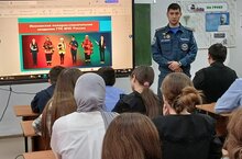 С учащимися 9-11 классов встретился заместитель начальника 102 ПСЧ 11 ПСО ФПС ГПС ГУ МЧС России по РТ капитан внутренней службы Зиангиров З.Г. Он провёл беседу о профессиях в МЧС и о Ивановской пожарно-спасательной академии ГПС МЧС России.