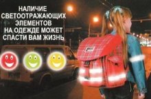 Уважаемые родители! Обратите внимание на наличие в темное время суток у ваших детей световозвращающих элементов. Берегите детей на дороге!!!
