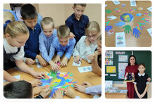 Завершилось мероприятие тем, что дети приняли участие в создании эмблемы "Дня толерантности", разложив цветные ладошки вокруг глобуса. -