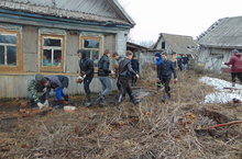 Волонтеры из 8-го и 7-го класса провели очистку территории у престарелого инвалида детства Скрипачевой Т.П. Убрали в саду захохшие сорняки, сложили дорожку из обломков старых кирпичей.