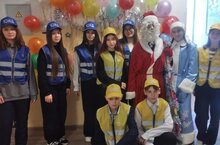 В преддверии Нового года и школьных зимних каникул руководитель кружка ЮИД совместно с Дедом Морозом проводил профилактические мероприятия по правилам дорожного движения.