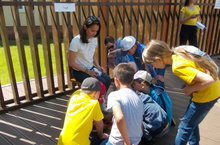 Получив заряд бодрости от утренней зарядки и позавтракав, мальчики отправились на уборку спортивной площадки, девочки помогали с реставрацией книг в школьной библиотеке. После обеда активисты Россиийского движения школьников провели с ребятами КВИЗ, посвященный Дню России.